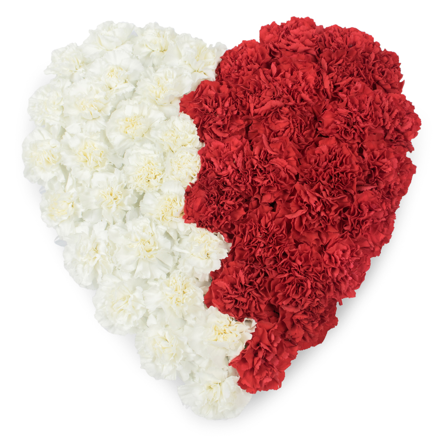 Enhance your special moments with our premium heart-shaped mixed carnations bouquet, featuring elegant white and striking red carnations. Each flower is hand-selected to ensure peak freshness and vivid color, creating a unique and captivating arrangement.